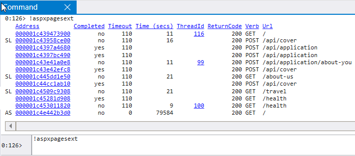MEX !aspxpagesext gives stats for processed ASP.NET requests: