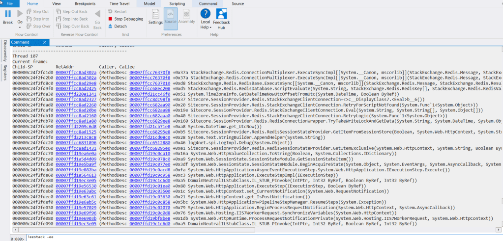 Mex extension powers !mthreads showing top frame/action performed by thread: