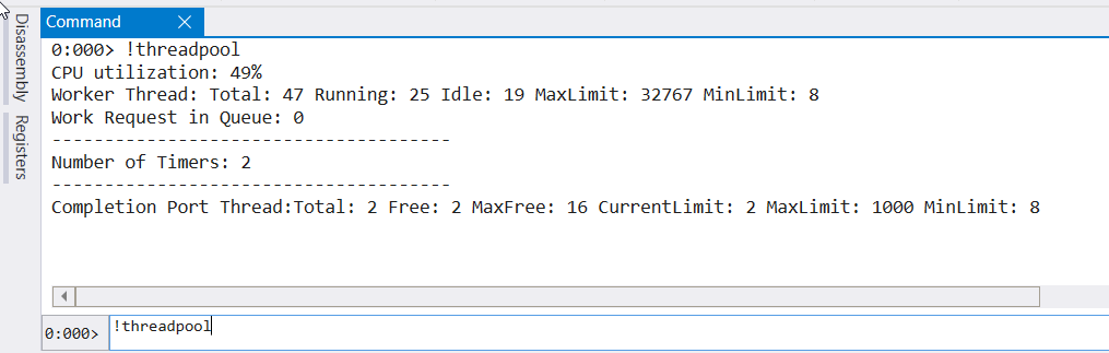 - Over 100 threads & low CPU likely flags a bottleneck in dependent resource (f.e. SQL, Redis, WebAPI calls)