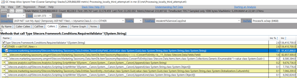 I was investigating Sitecore Aggregation case a time back and my attention was caught by GC Heap Allocation mentioning RequiresValidator in top 10: