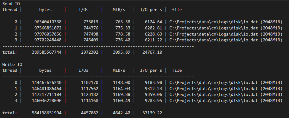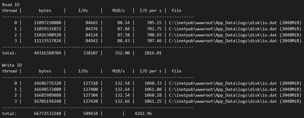 diskspd.exe -b128K -d120 -o16 -t4 -r -c2G -w60 -W2 -C2 filepath